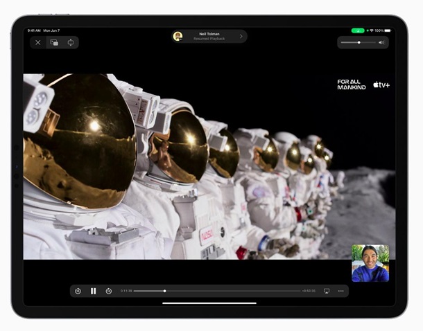 Завдяки функції SharePlay користувачі айфонів, айпадів і маків зможуть разом під час дзвінка по FaceTime дивитися тіктоки, серіали і стрім, а також слухати музику (зображення можна вивести на Apple TV). Учасники бесіди зможуть управляти контентом: ставити його на паузу, перемикати і перемотувати.