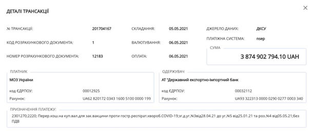 “Точно невідомо, за яку саме вакцину і кому сплачені кошти. Адже в МОЗ не розкривають деталей угод про закупівлю вакцин проти COVID-19, крім угоди ДП Медичні закупівлі і приватної компанії Лекхім на поставку китайської вакцини CoronaVac”, – йдеться в повідомленні.