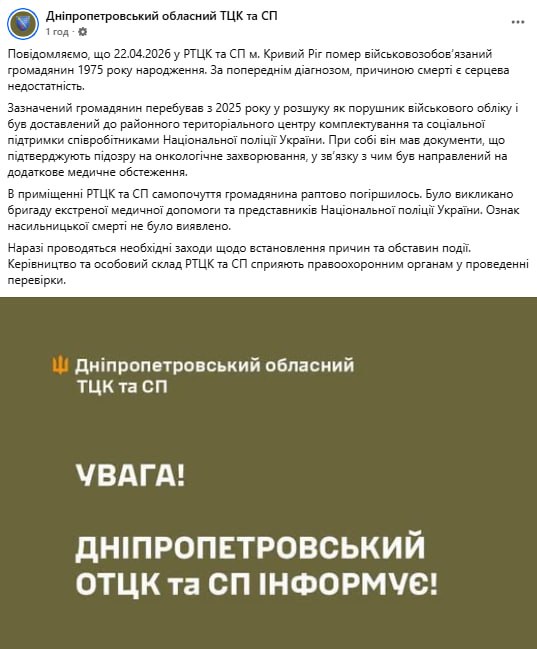 Ось так і живемо, точніше, виживаємо. Звикли до того, що кожен день співробітники ТЦК калічать і вбивають людей. Випадки смертей у стінах ТЦК, як це сталося 22 квітня 2026 року в Дніпрі, стали системою.